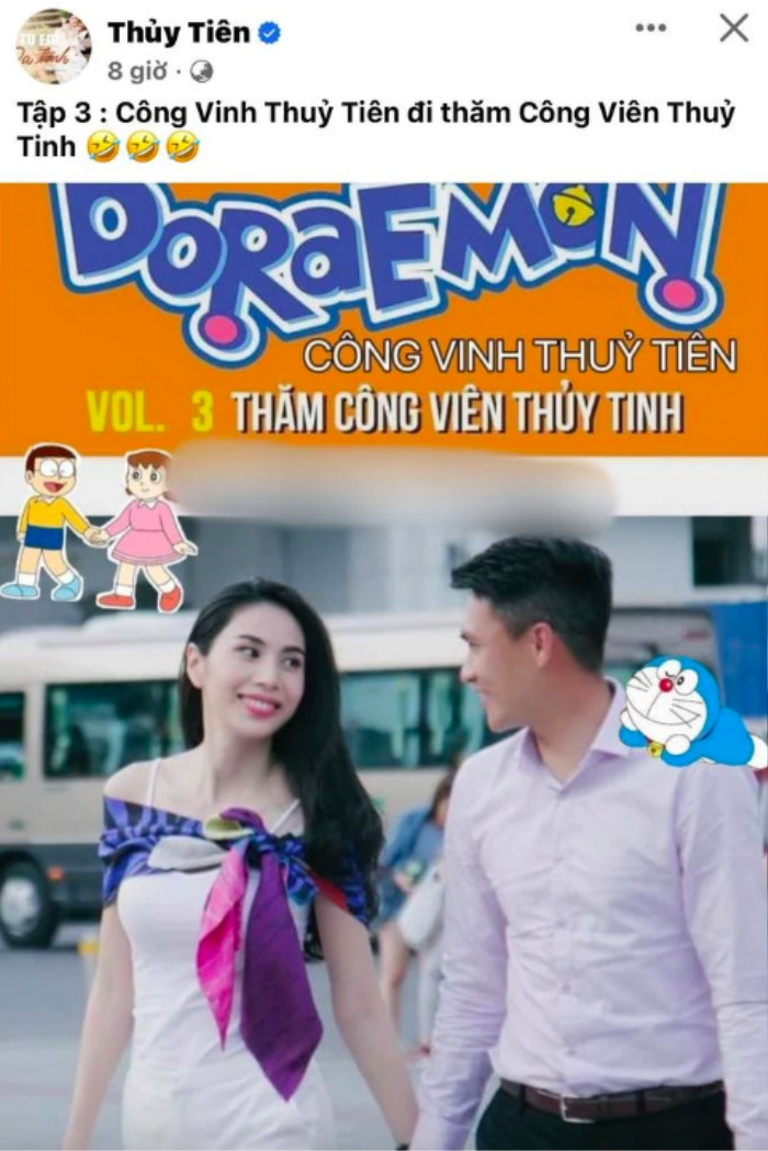 Một trong những chi tiết khiến dân tình "dở khóc, dở cười" chính là màn đọc nhầm tên của luật sư từ "Công Vinh - Thuỷ Tiên" sang "Công Viên Thuỷ Tinh'. Mới đây nhất, chính Thuỷ Tiên đã bày tỏ sự thích thú khi đăng tải bức ảnh photoshop ảnh vợ chồng cô trên bìa truyện tranh Doraemon với dòng chú thích:"Tập 3: Công Vinh Thuỷ Tiên đi thăm Công Viên Thuỷ Tinh".