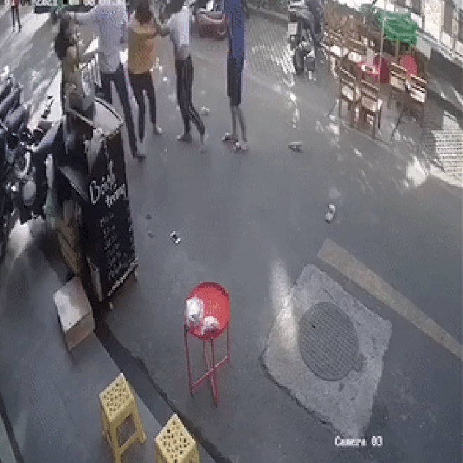 Theo đoạn clip, 2 nữ nhân viên (mặc áo vàng) được cho là làm việc tại quán ăn bên vỉa hè đã xảy ra cự cãi với một người đàn ông và người phụ nữ. Hai bên lời qua tiếng lại khá căng thẳng, người đàn ông còn rút dép ra dọa nạt 2 nữ nhân viên.