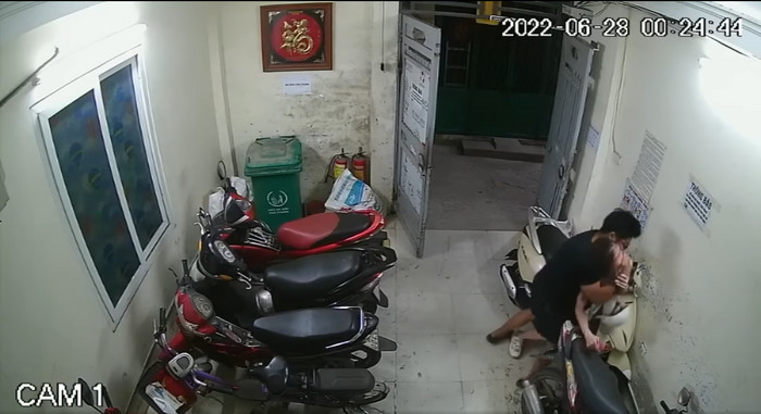 Nội dung clip cho thấy, khoảng 0h22 ngày 28/6, cô gái mặc áo hồng, đi xe máy vào khu nhà trọ ở phố Đông Tác, phường Kim Liên, (quận Đống Đa, Hà Nội).