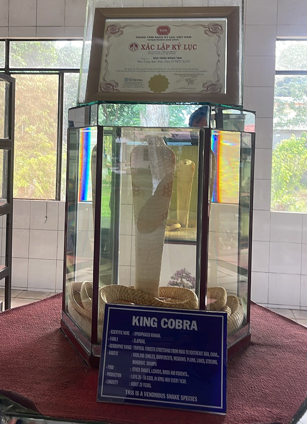 Tại đây, du khách có thể quan sát đời sống của hơn 40 loài rắn, các loài thú và một số tiêu bản của các loại rắn, trong đó có hơn 200 con rắn h ổ mang chúa,…