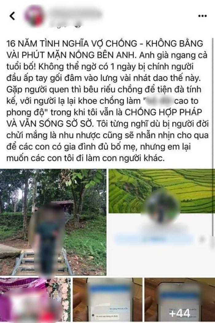 Hai người nhắn tin với nhau thì 1 câu vợ 2 câu chồng, trong khi tôi mới là chồng hợp pháp ở đây! Vì con cái tôi có thể nhịn, nhưng đây chuyện đã bại lộ, nó còn thách thức tôi, nên tôi đành đăng lên mạng để nhờ cộng đồng mạng phân xử giùm”, người chồng đăng tải.